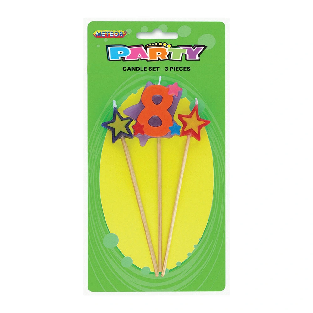 Includes 3 Piece Numeral Candle Set Assorted Whether it’s for a birthday, baby shower, anniversary or any other celebratory occasion, these candles are sure to be a huge hit on top of any cake Let’s face it, candles can be very boring. Brighten up your cake decoration skills with these unique candles to make your cake stand out from the crowd No harmful chemical High-Quality Coordinate with other party supplies and party tableware