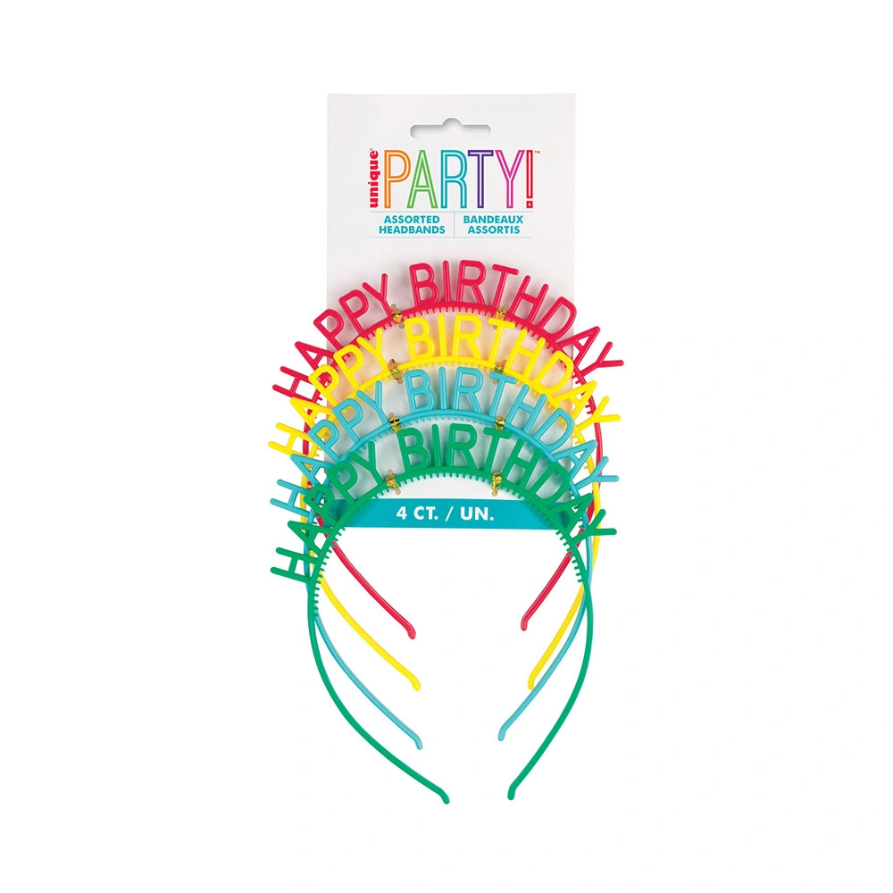 Unique Bright Colourful “Happy Birthday” Headbands 4 Pack
