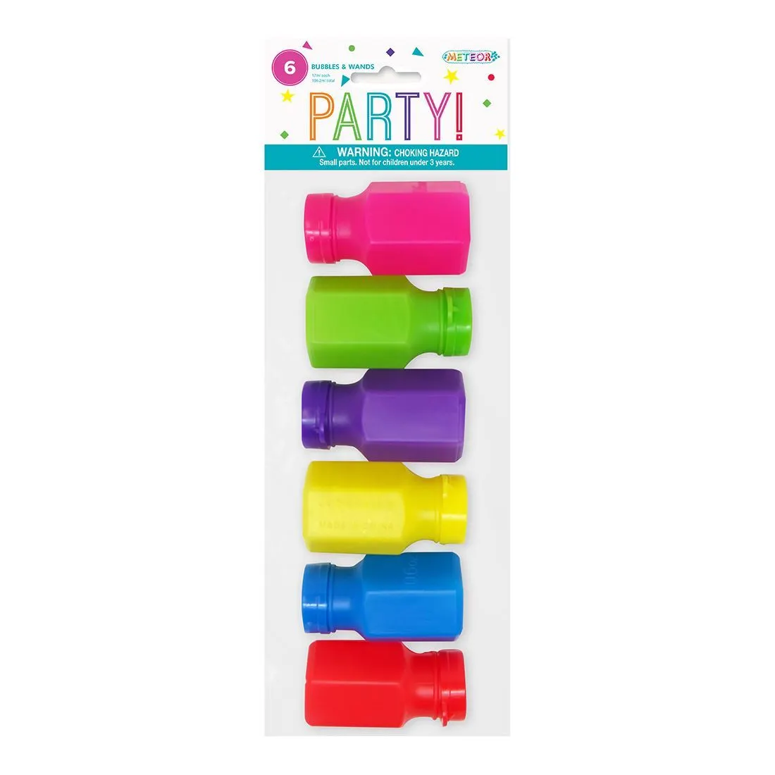 Pack of 6 17ml each Supplied with a bubble wand. Amaze your guest by this product. The bubbles can be used both indoors & outdoors, & are a fun activity for children ages 3+. Perfect for use at kids birthday parties, BBQ’s, summer picnics and even weddings! For lots of good times, fun and entertainment at any celebration & event. Please note that bubbles are not suitable for children under 3 years old.