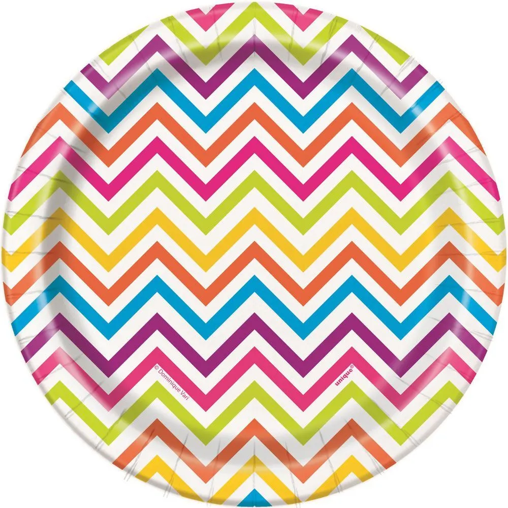 Unique Chevron Rainbow Paper Plates 18cm 8 Pack