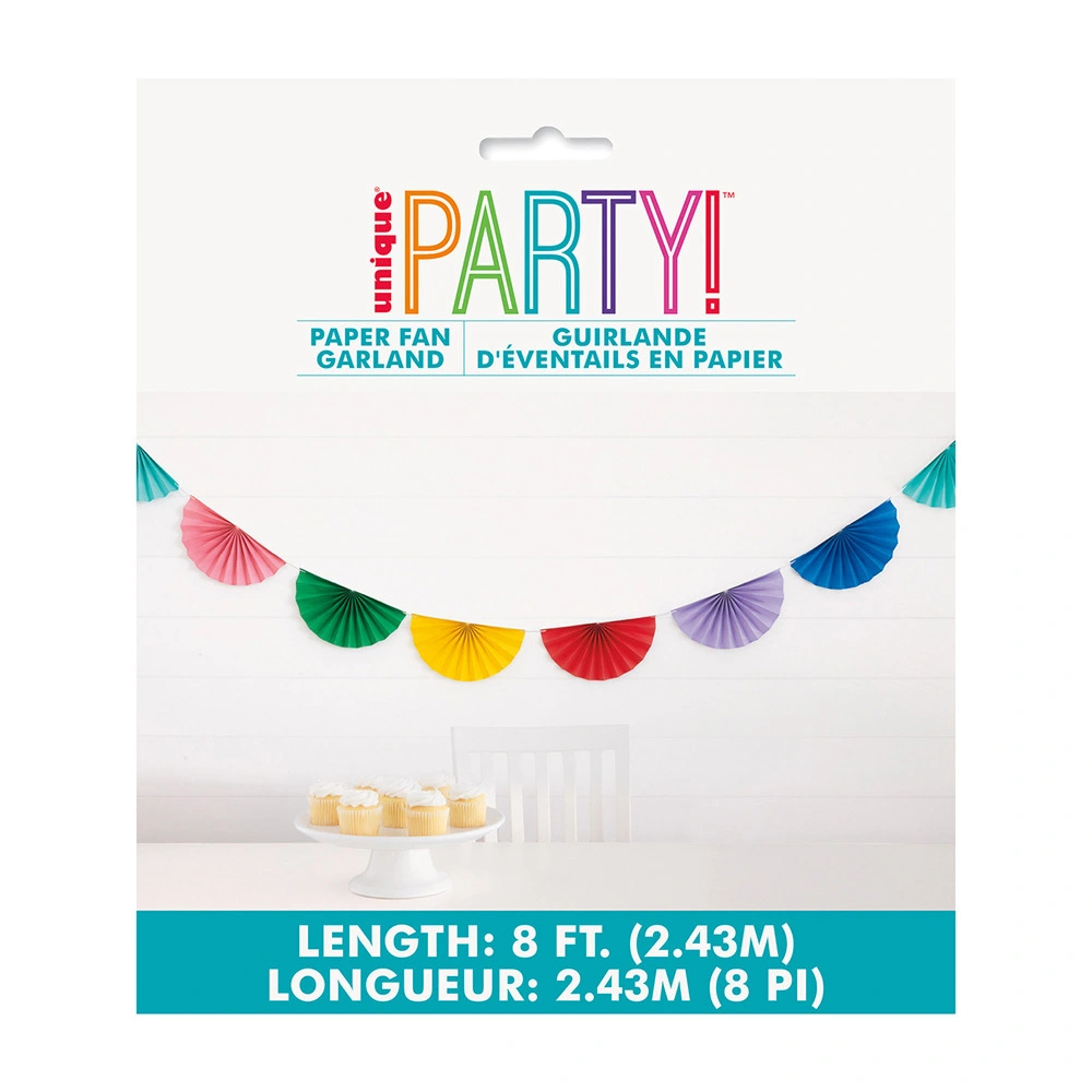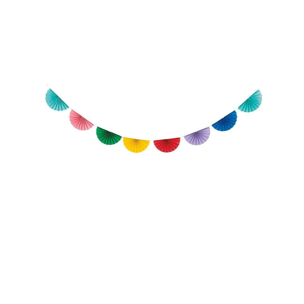 Includes 1 Colourful Scallop Paper Fan Garland Measures 2.43m Material: Paper High-quality Perfect accessory for your theme parties Coordinate with other party supplies and party decorations