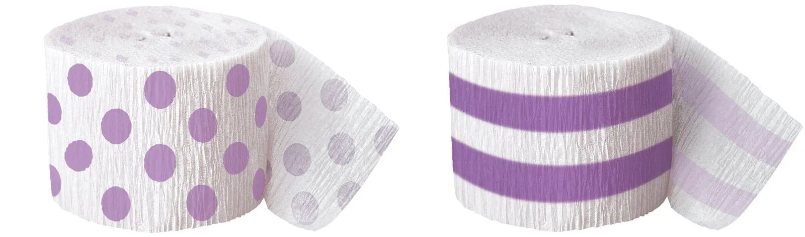 Unique Crepe Streamers Pretty Purple Stripes And Dots 2 Pack