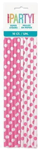 Unique Dots Hot Pink Paper Straws 10 Pack
