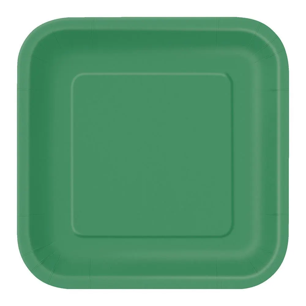 Unique Emerald Green Square Paper Plates 22cm 14 Pack