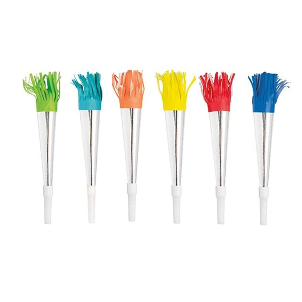 Includes 6 Foil Horns With Fringe – Assorted Colours High Quality Assorted Colours Perfect for theme parties, masquerade parties, birthday parties, graduations, and wedding parties Can be placed in goodie bags with other treats and party favours. Coordinate with other party supplies and party favours