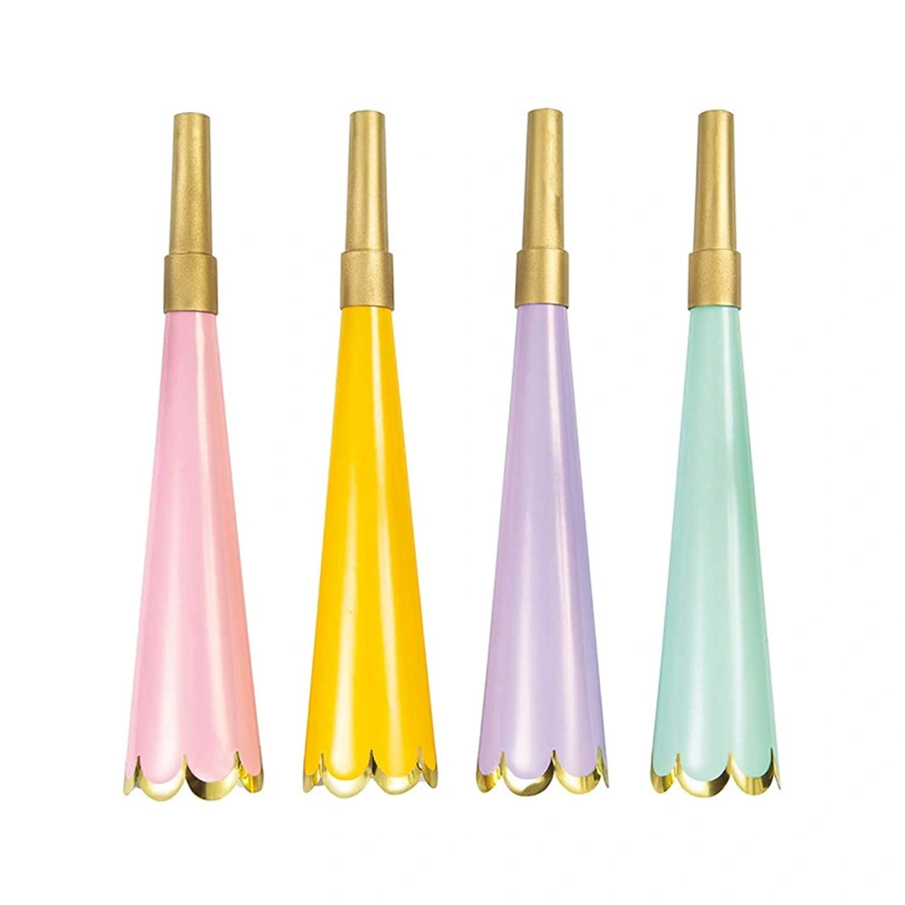 Includes 4 Foil Horns With Scalloped Edge – Assorted Colours Measures Approx 19.5cm x 3cm Assorted Colours High Quality Perfect for theme parties, masquerade parties, birthday parties, graduations, and wedding parties Can be placed in goodie bags with other treats and party favours. Coordinate with other party supplies and party favours