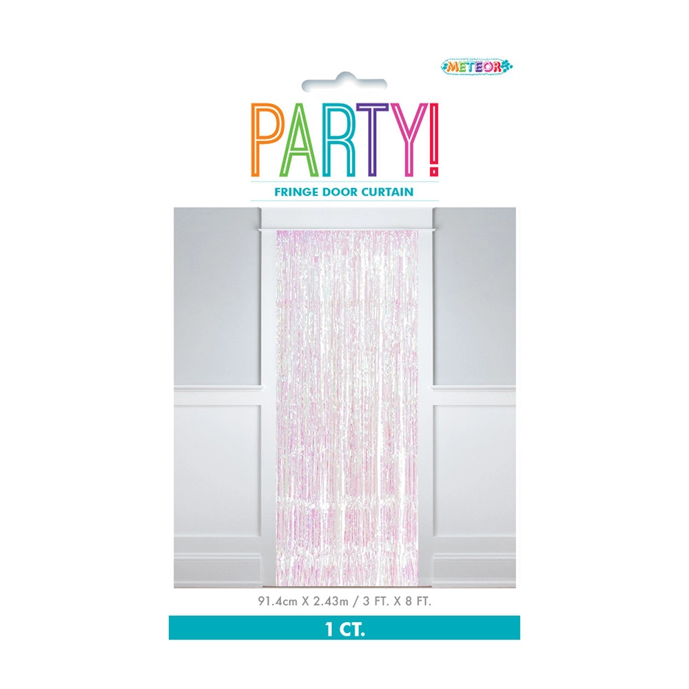 Includes 1 Fringe Door Curtain Iridescent Measures 0.91m W X 2.43m L Material: Foil High-quality Perfect accessory for your theme parties Coordinate with other party supplies and party decorations