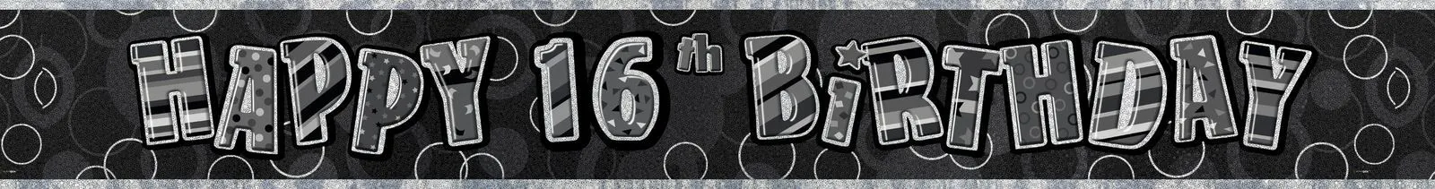 Unique Glitz Black And Silver 16th Birthday Foil Banner 3.65m