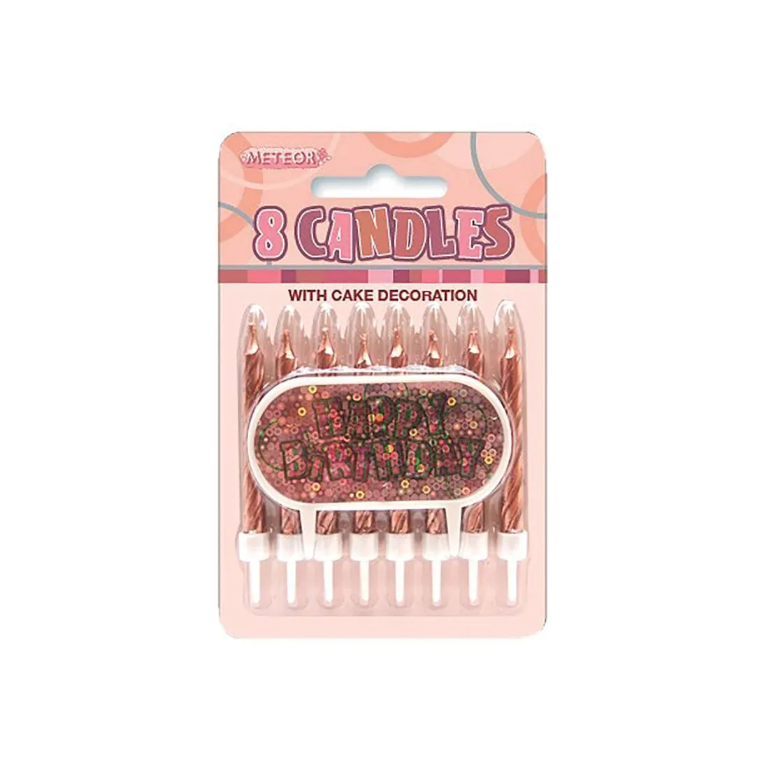 Unique Glitz Candles With Happy Birthday Decoration- Rose Gold 8 Pack