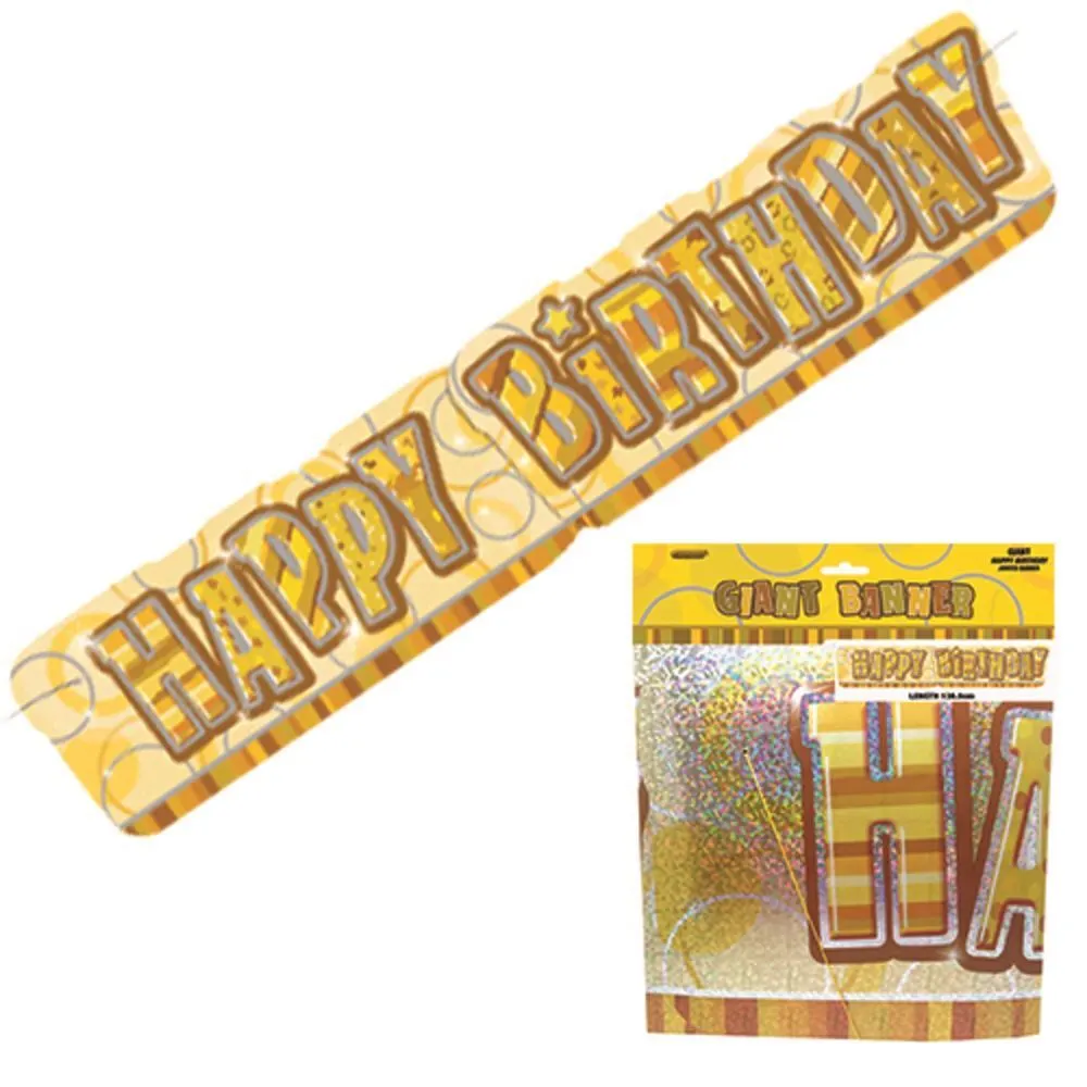 Unique Glitz Gold Giant Happy Birthday Banner