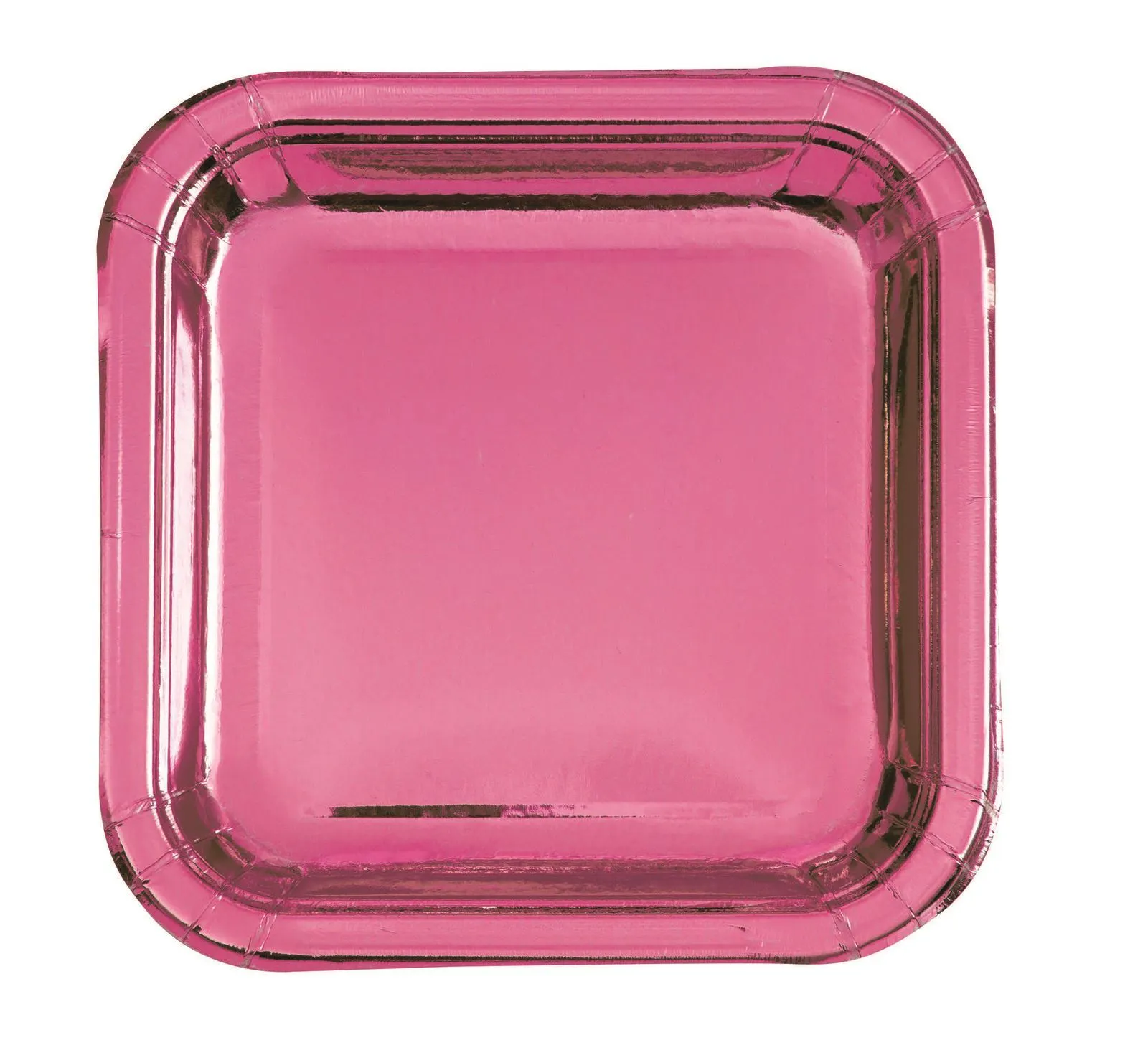 Unique Glitz Hot Pink Foil Square Paper Plates 22cm 8 Pack