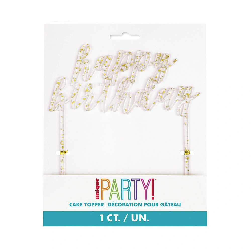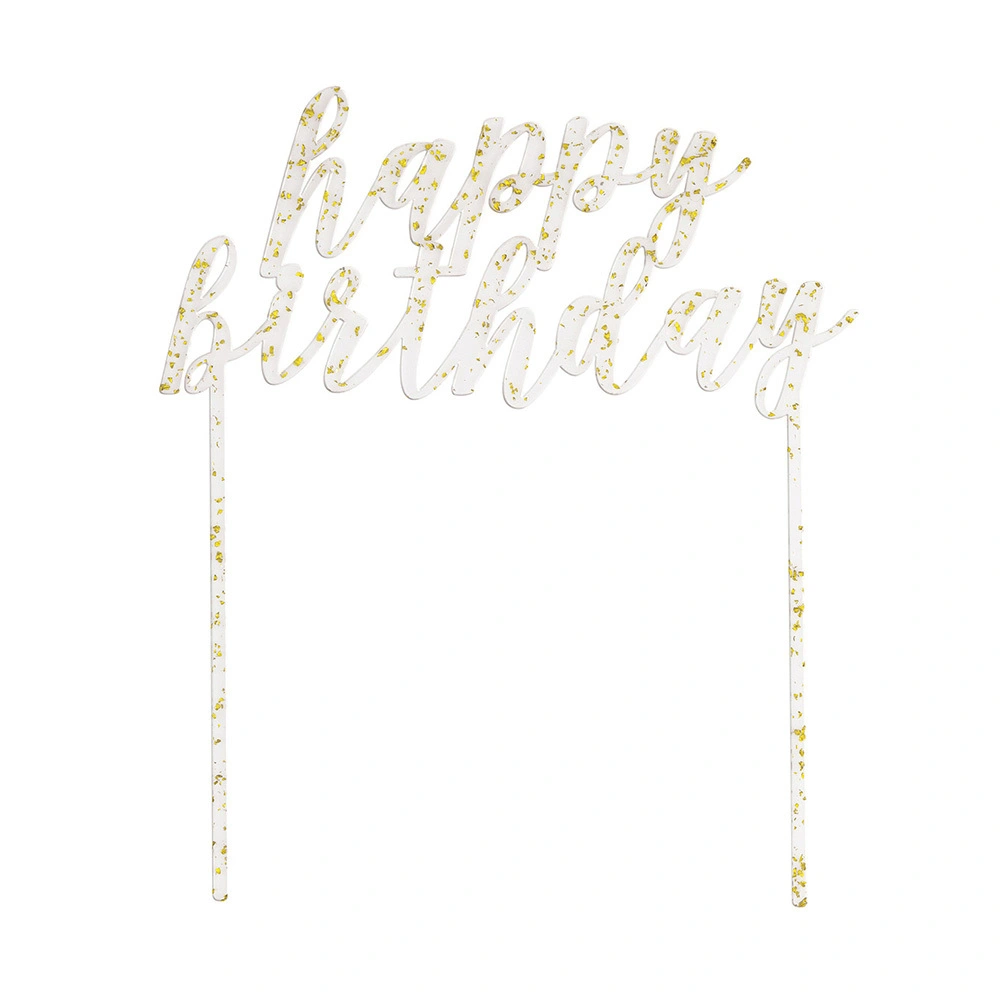 Unique Gold Fleck Acrylic “Happy Birthday” Cake Topper