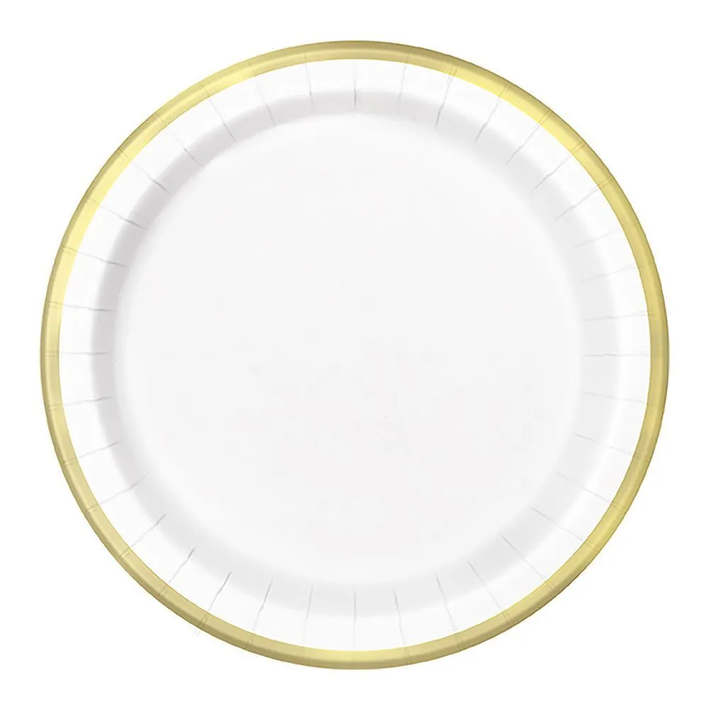 Unique Gold Trim Foil Stamped Paper Plates 17cm 8 Pack