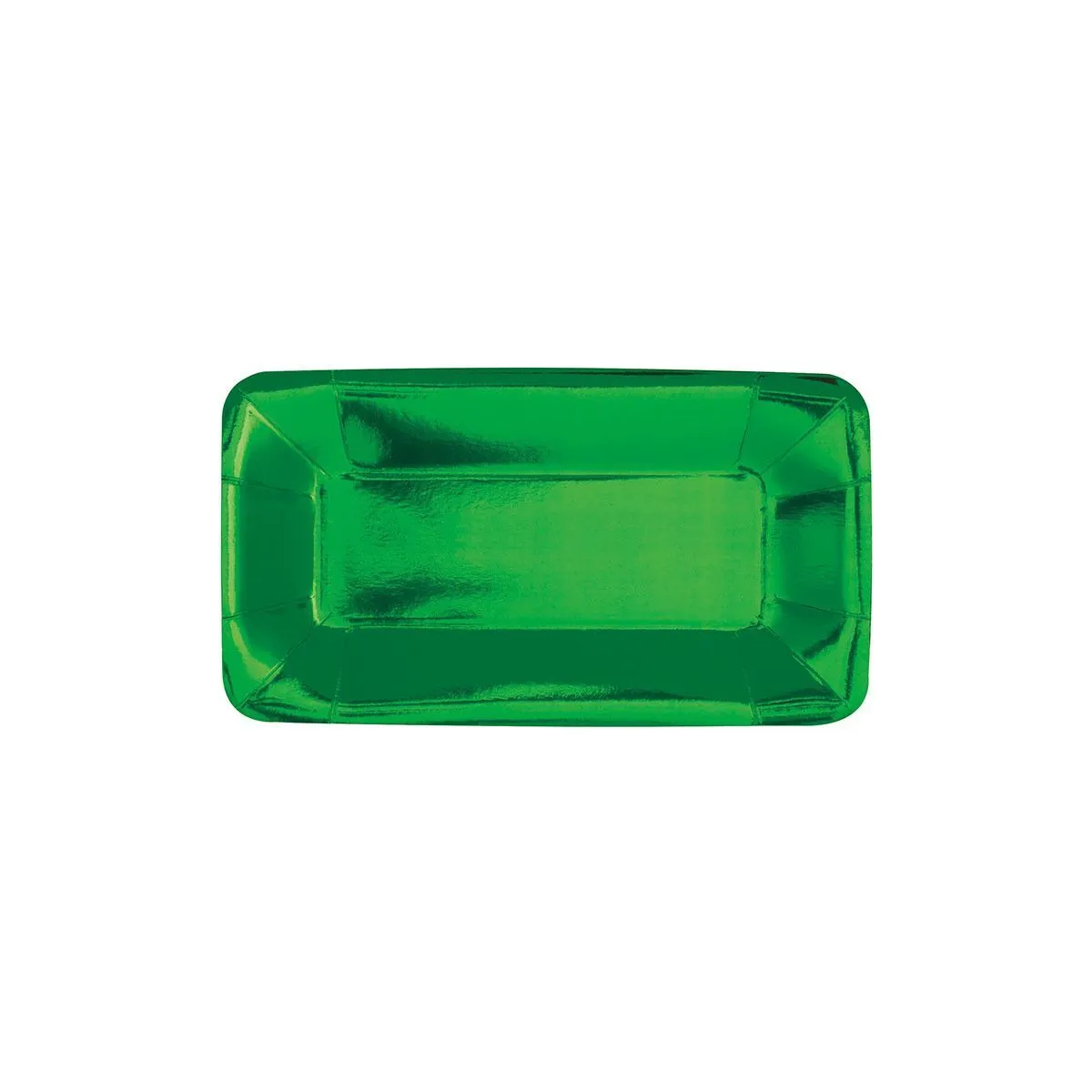 Unique Green Foil Rectangle Appetizer Paper Plates 22cm X 13cm 8 Pack
