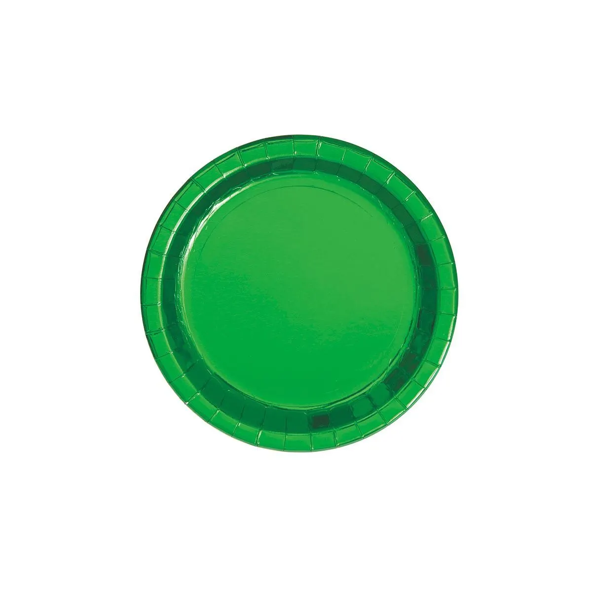 Unique Green Foil Round Paper Plates 17cm 8 Pack