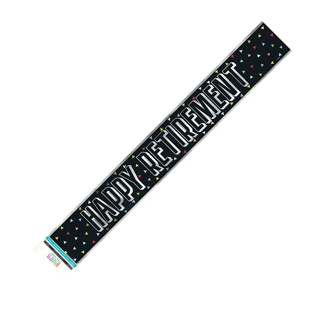 Includes 1 Happy Retirement Black Foil Banner Measures 3.65m Perfect for your theme party Coordinate with other party supplies and party decorations