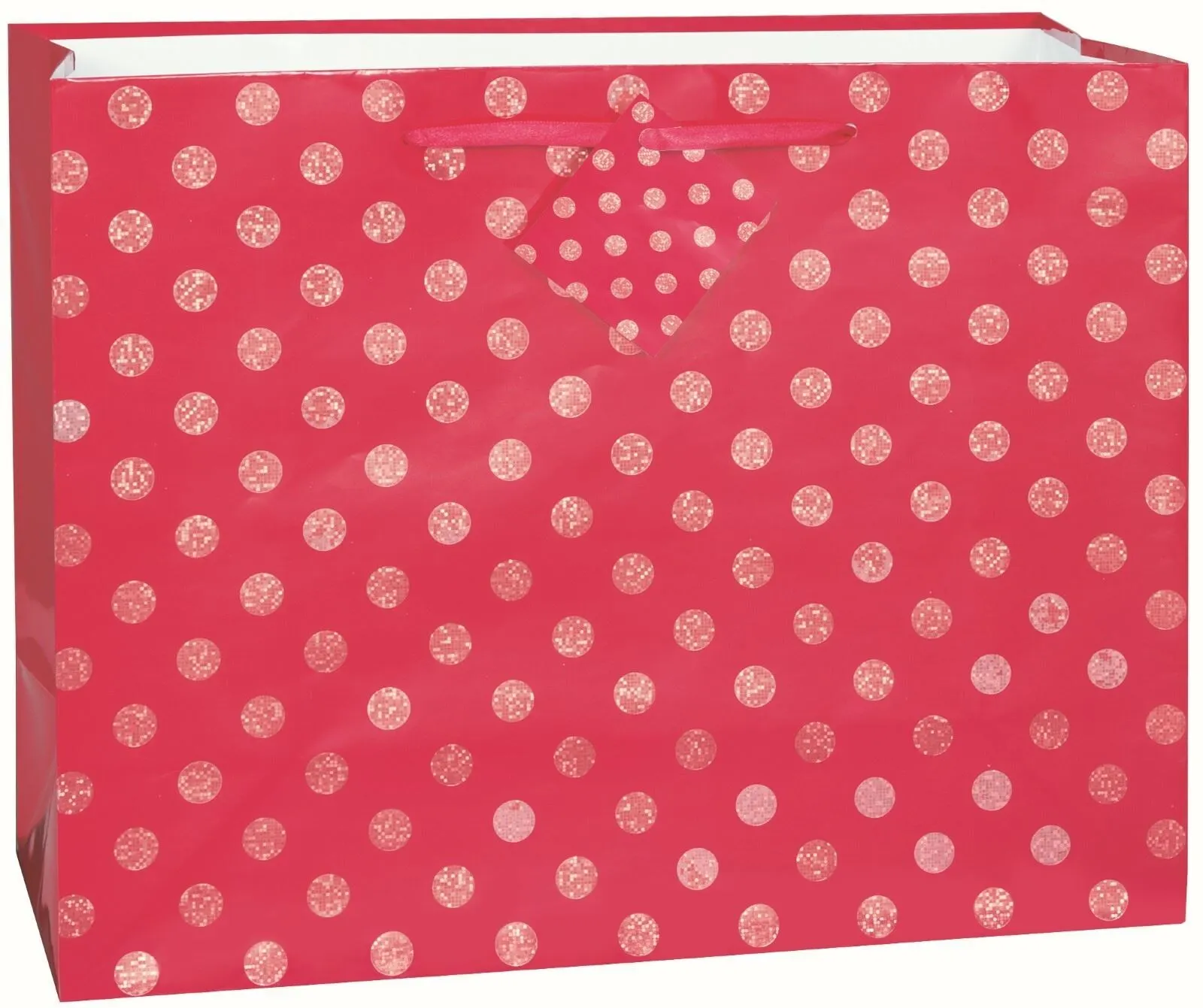 Unique Hot Pink Glitter Dot Horizontal Large Gift Bag