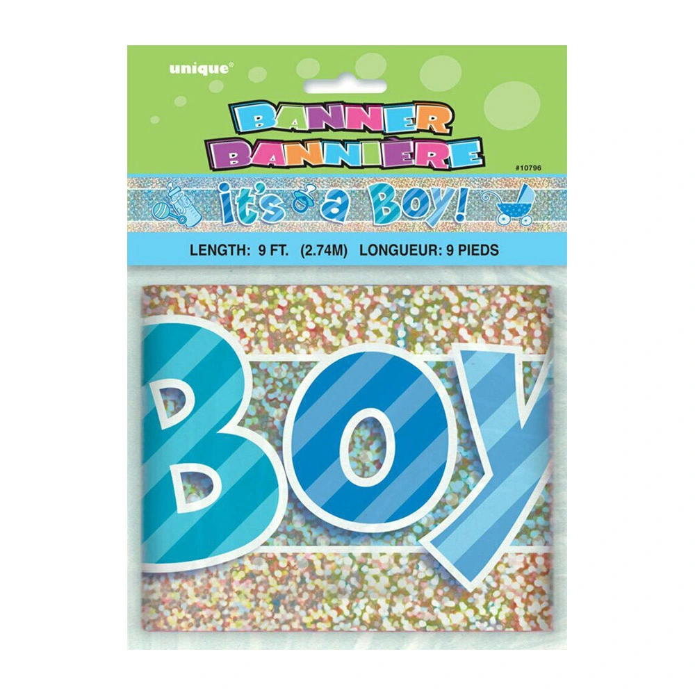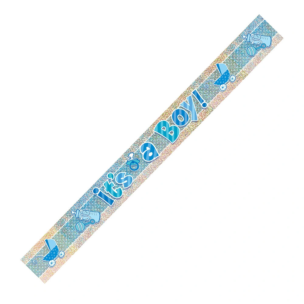 This Banner is a great way to add some festive decoration to a birthday party! It can help set the tone and create a fun atmosphere for the celebration. Includes 1 It’s A Boy Prismatic Banner Measures 2.7m High-Quality Great for birthdays and baby showers