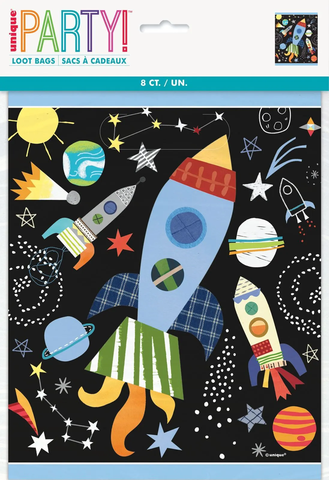 Includes 8 Outer Space Loot Bags Measures 22.86cm (L) x 17.78cm (W) High Quality Made of plastic Cut out handle The perfect for your themed parties Coordinate with another party supplies adn party decorations