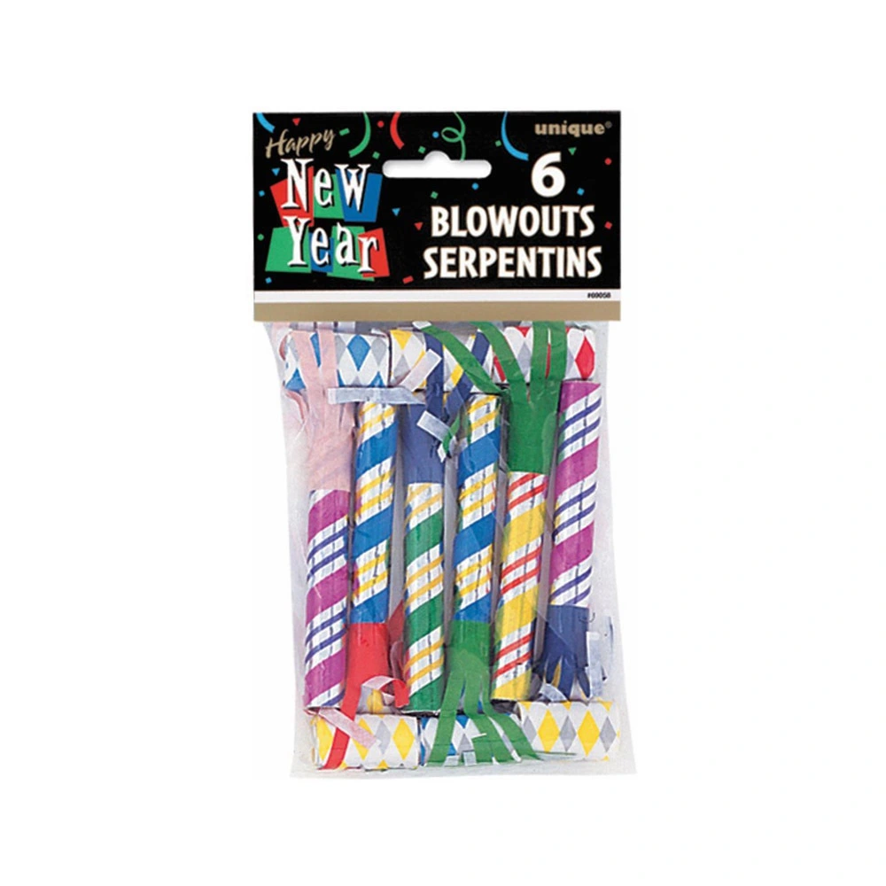 Includes 6 Party Blowouts New Years High Quality Perfect for theme parties, masquerade parties, birthday parties, graduations, and wedding parties Can be placed in goodie bags with other treats and party favours. Coordinate with other party supplies and party favours