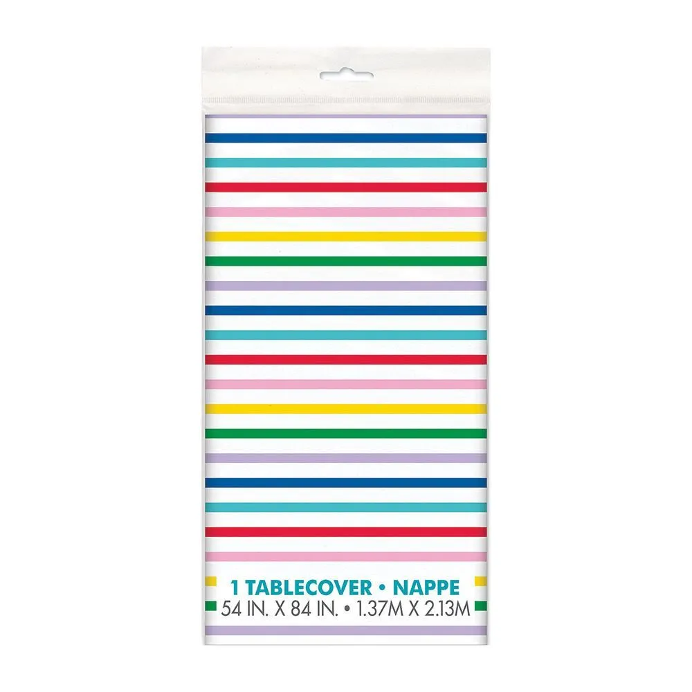 Includes 1 Primary Striped Printed Tablecover Measures 1.37m x 2.13m Perfect for your theme party Coordinate with other party supplies and party decorations
