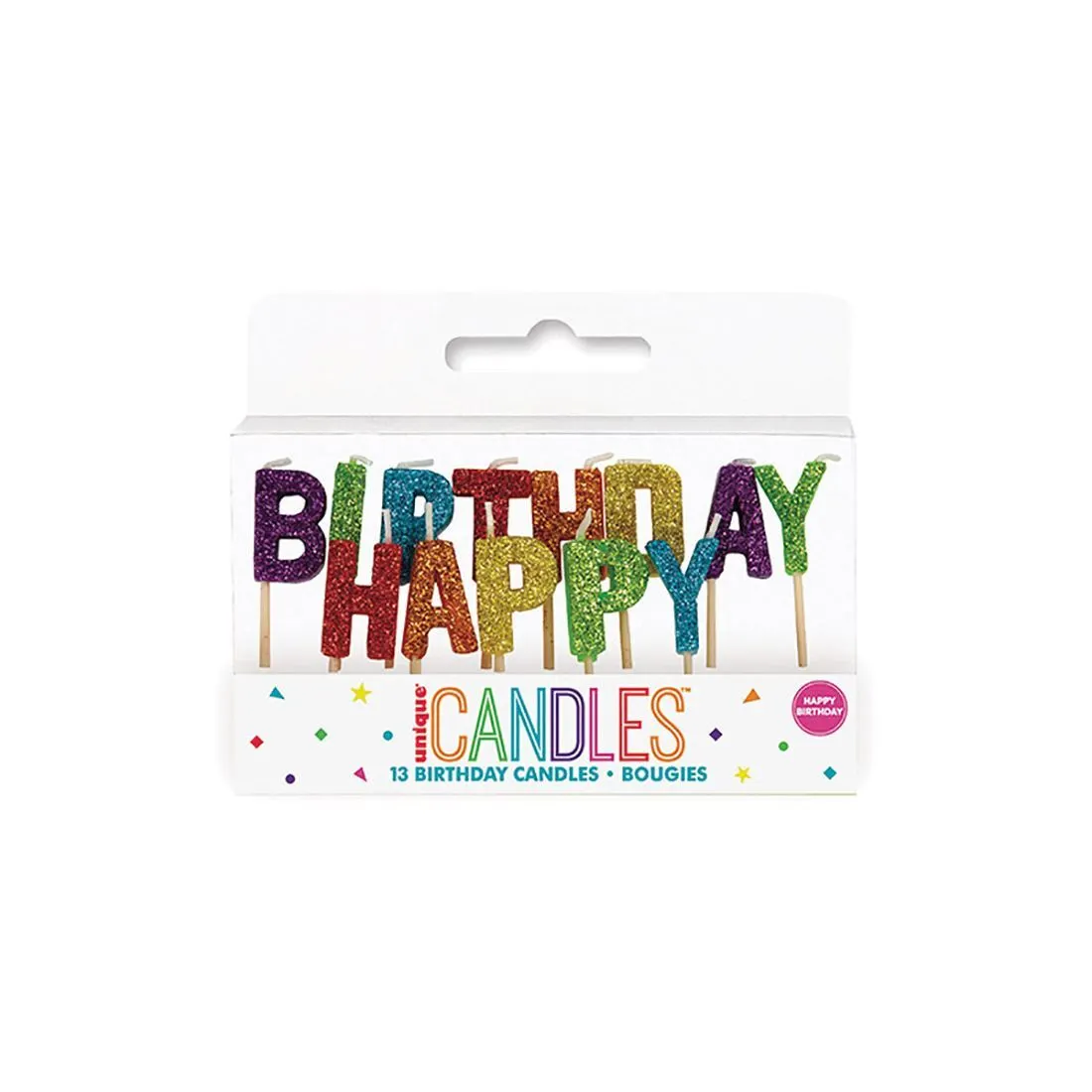 Unique Rainbow Glitz “Happy Birthday” 13 Pick Candles
