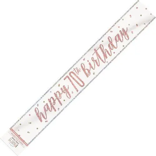 Rose Gold Happy 70th Birthday Prismatic Foil Banner 2.74m (9′)