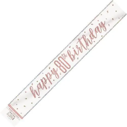 Rose Gold Happy 80th Birthday Prismatic Foil Banner 2.74m (9′)