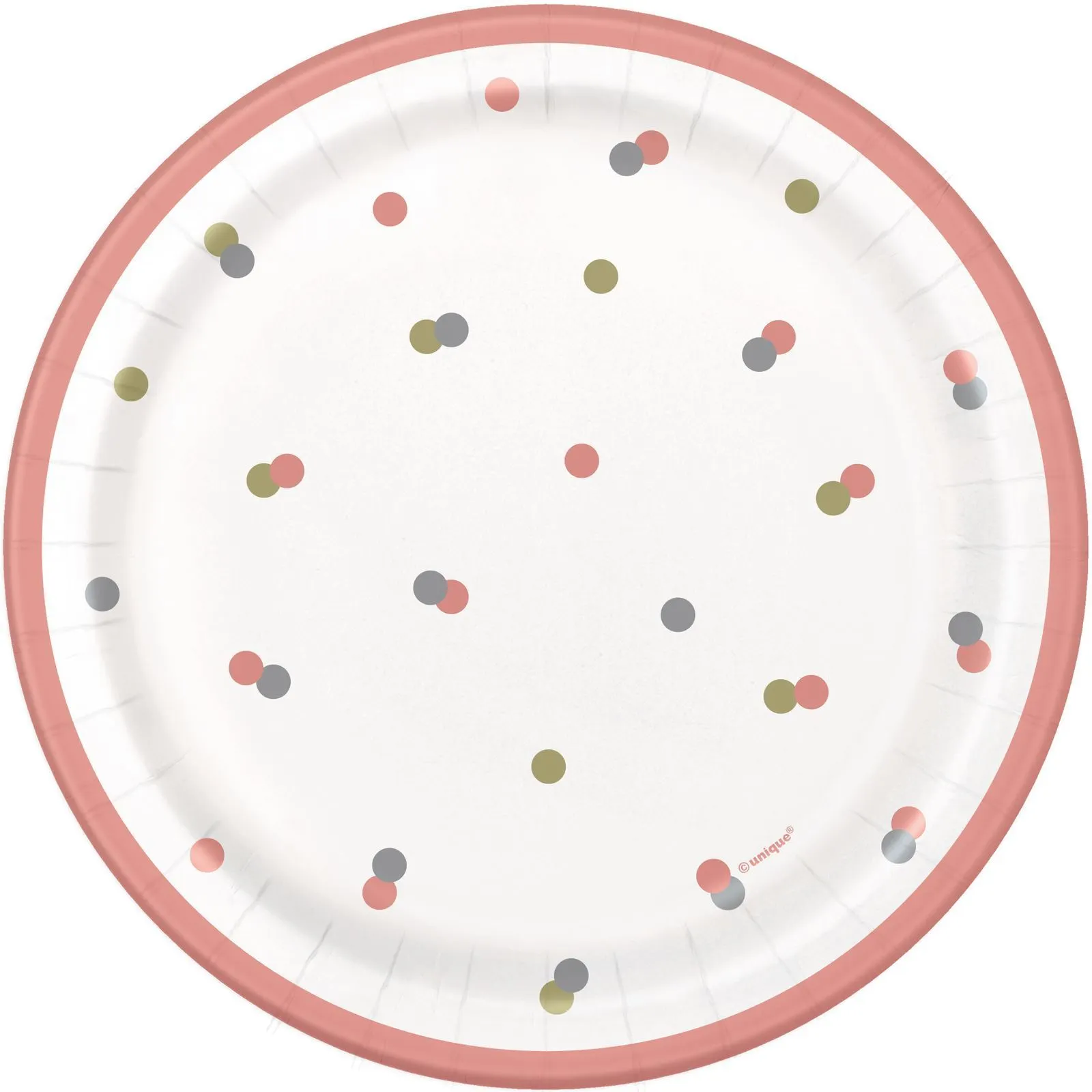 Unique Rose Gold Happy Birthday Paper Plates 18cm 8 Pack