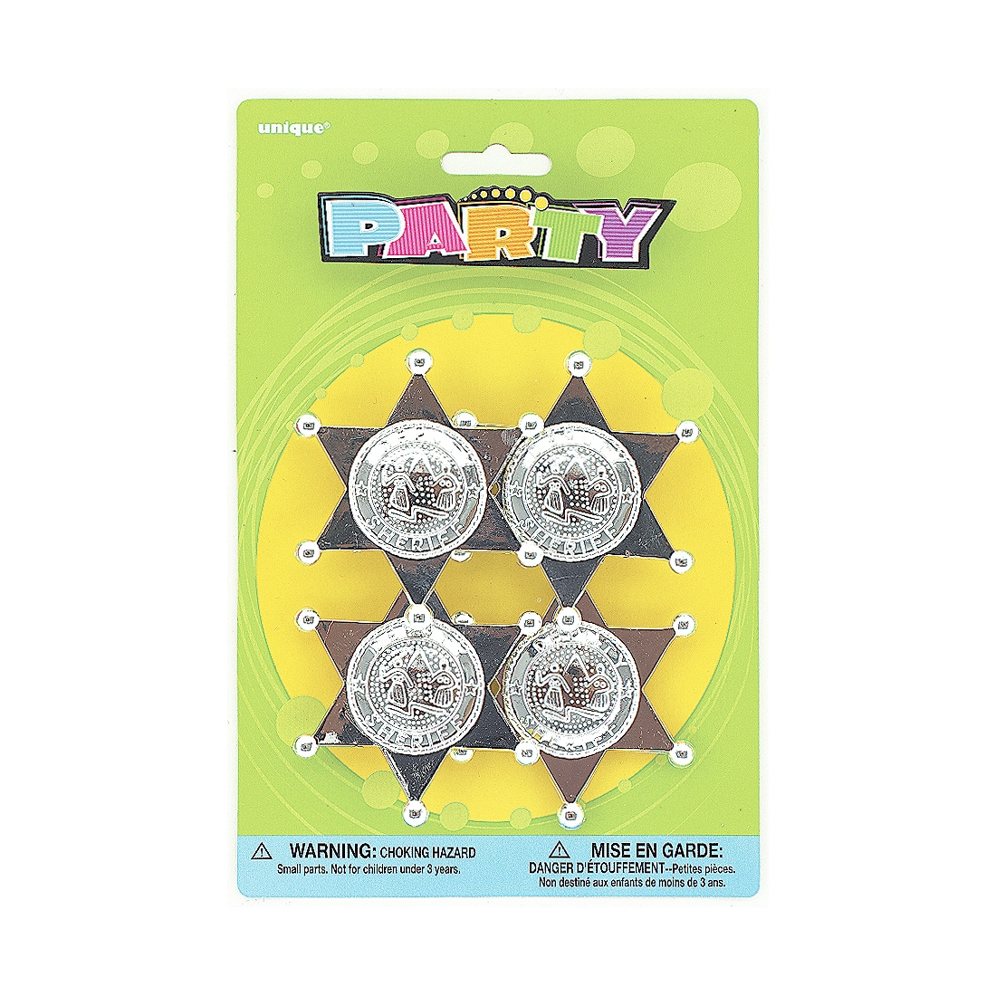 Includes 4 Badges High-Quality Great for Theme parties Coordinate with other party supplies and party favours