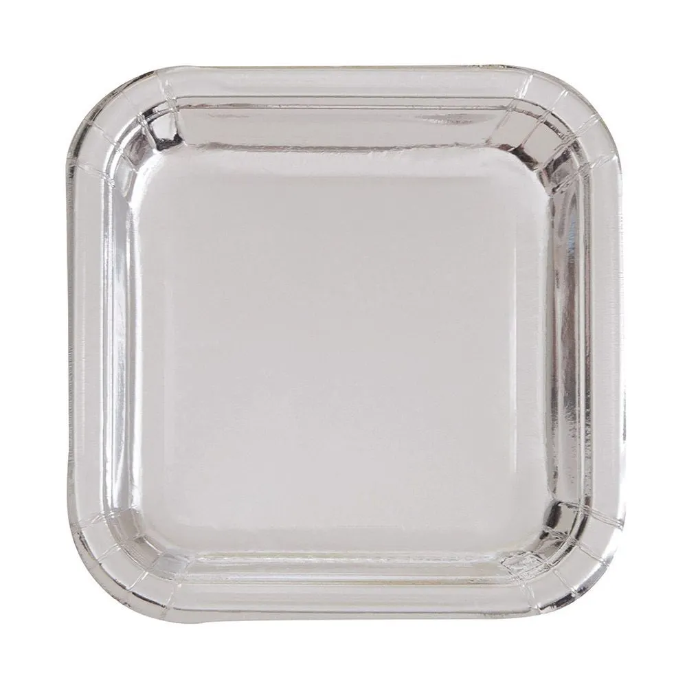 Unique Silver Foil Square Paper Plates 17cm 8 Pack
