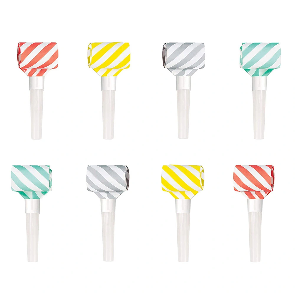 Includes 8 Striped Squawker Blowouts Assorted Colours High Quality The perfect accessory for your theme parties Coordinate with another party accessory and party decorations to complete your party