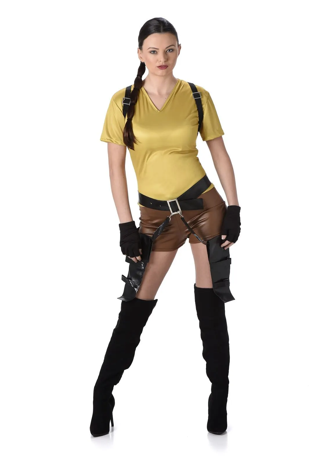 Product Description Would you want to be the next Tomb Raider? Try this Costume and Fight through the wilds of the unknown this season and get ready to find and solve mysteries. This Outfit is perfect for any Costume Parties. Includes: Top Hot Pants Utility Belt Gloves & Backpack “Not Available For Click And Collect”